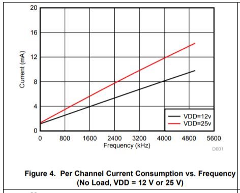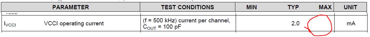 Q2 - in datasheet, typical IVCCI is specified at 2.0mA under test conditions of "(f = 500 kHz) current per channel, COUT = 100 pF" ==> can elaborate? is this condition under 0 output current with freq = 500kHz?