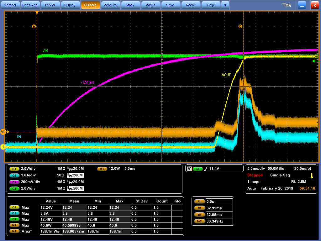(2)Channel1: VOUT, Channel2: IIN, Channel3: +12V_EN, Channel4: VIN
