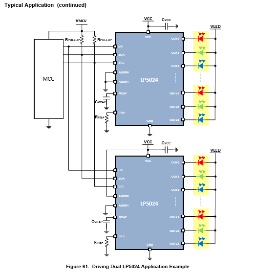 2. I using 2 pcs LP5024 like Figure 61, but I will connect all Vcc, Vled, VMCU together to 3.3V, do you think its ok ?