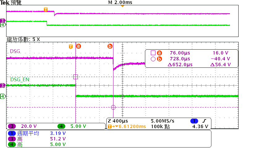 In our circuit we DSG pin delay 600 us after GSG_EN go low. Would you help review our schematics any thing wrong there?