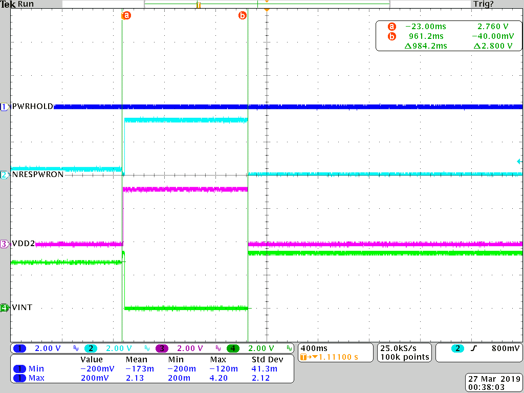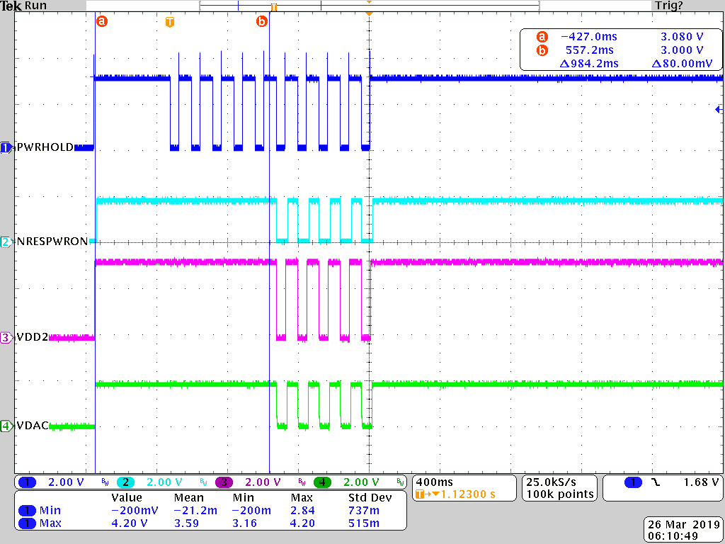 LDO and DCDC do not turn off for 1 second from the first PWRHOLD toggle. Why is that?