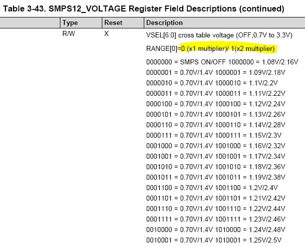 We want to read the SMPS channel output voltage value of the PMIC, but we don't understand the contents of the VSEL value in the VOLTAGE Register of the Register Map.