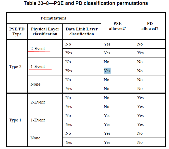 The problem is that the query power level of PSE is Class 4 (802.3at), but the output of T2P is high, which is equivalent to my judgment circuit to determine that it is AF (not in line with the actual situation).