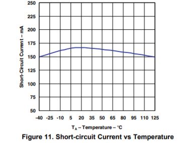 The datasheet also has the current limit curve vs temperature at short circuit condition.