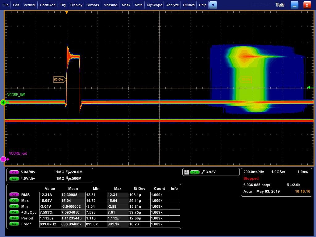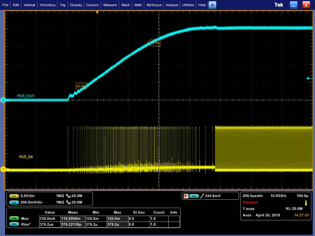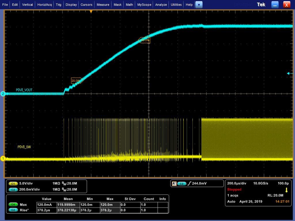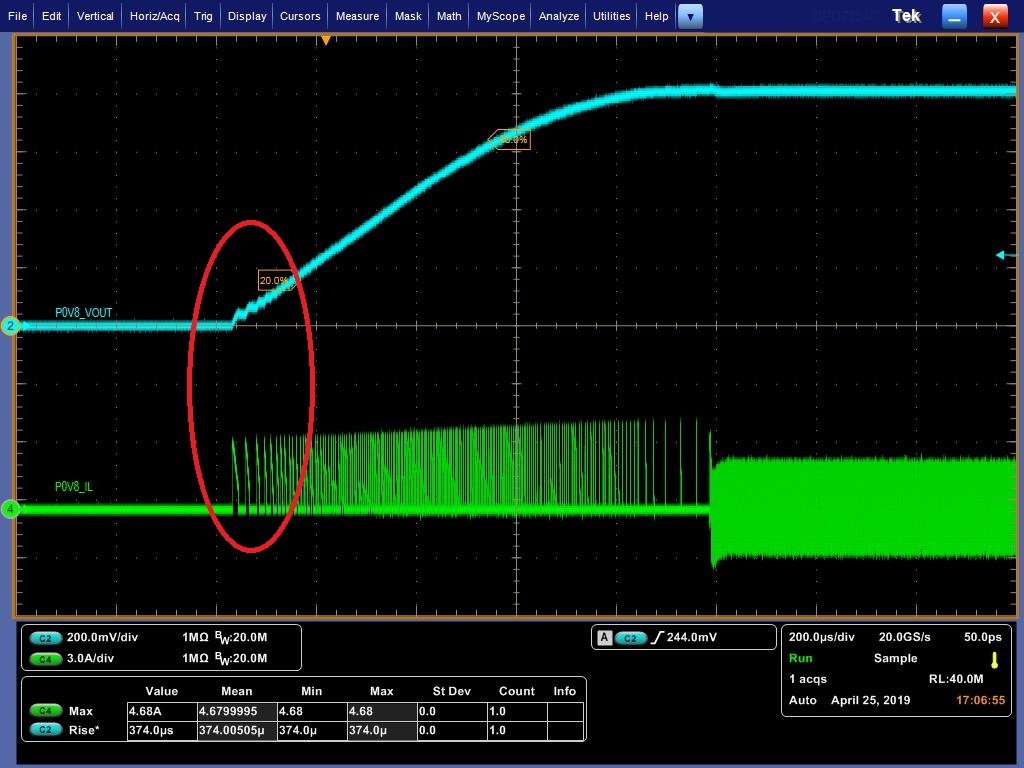 We use TPS548B22 converter for 12V to 0.8V solution. We found the start-up waveform is not smooth.