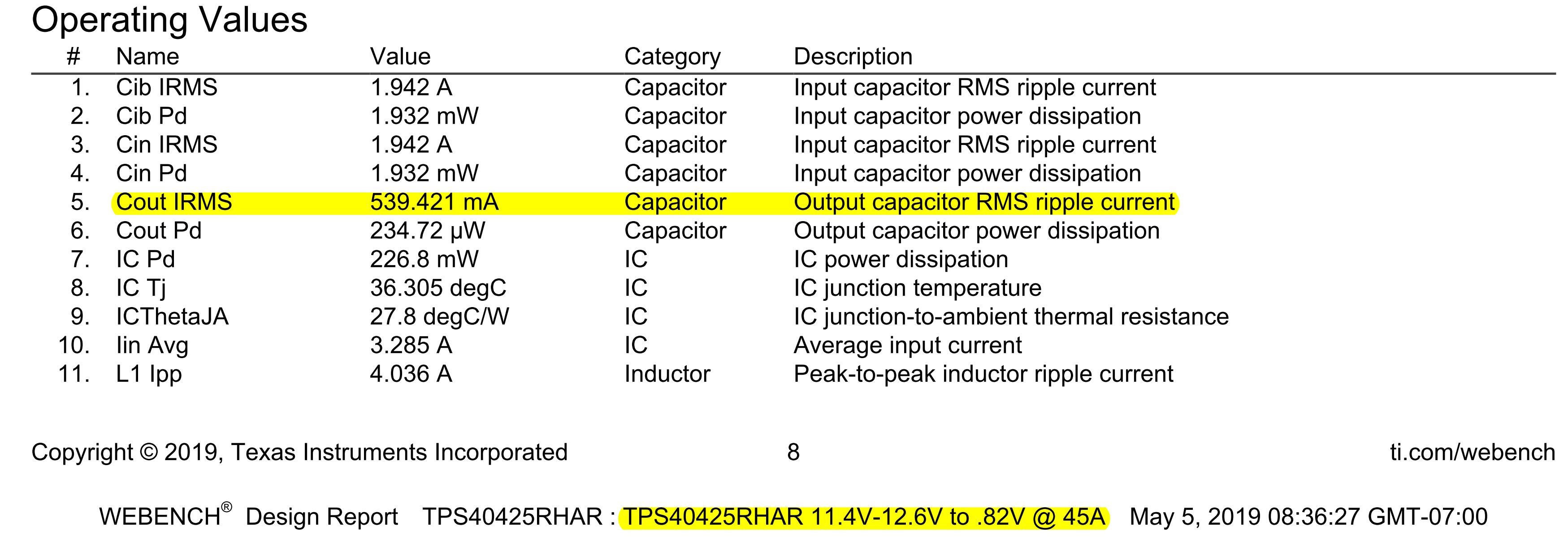 I would like to calculate the ripple current for the output capacitors by using Equation 2.