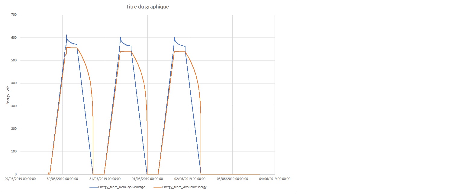 Here are some logs showing the issue during learning cycles on various batteries. The wrapping event does not occur at the same time nor the same value of Available Energy. However it seems to disappear for lower battery capacities.