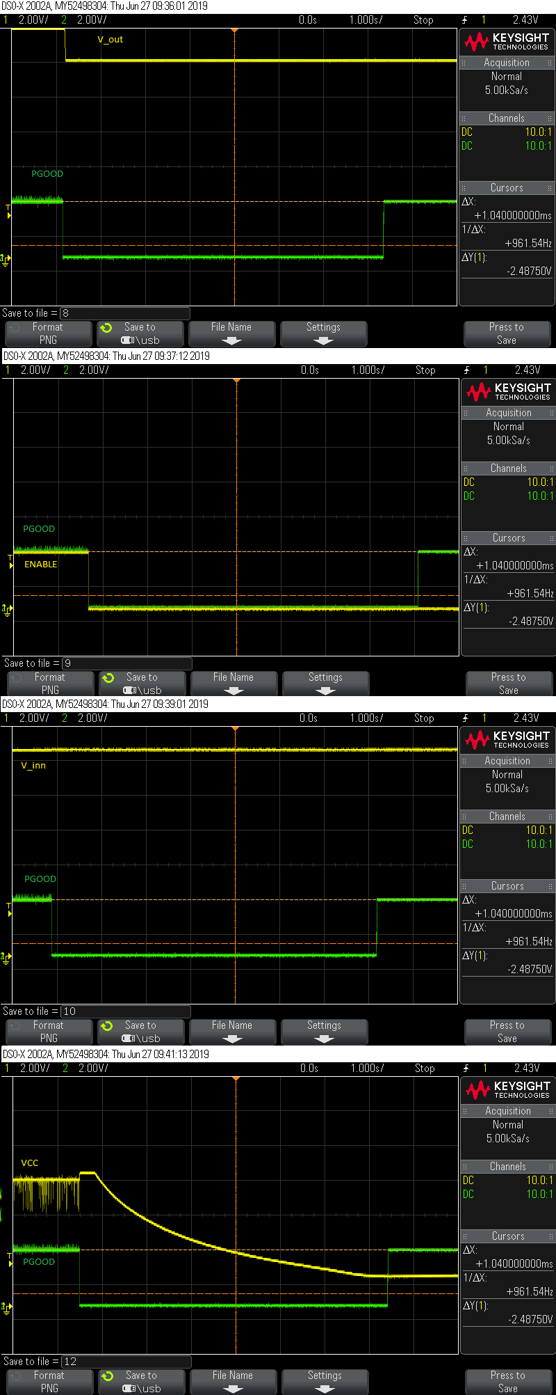 Some time during startup it the PGOOD signal is not pulled low, even though the EN signal is low. This does not happen all the time, and is quit hard to reproduce: We have not found out exactly what triggers this behavior.