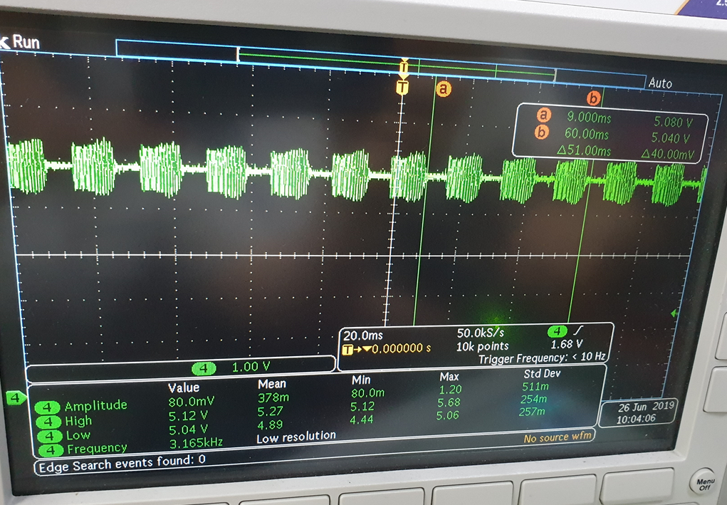 The MCU does not operate when the review results in a sound on the board, and MCU operation stops when outputting from the 5V output to the graph shown below.