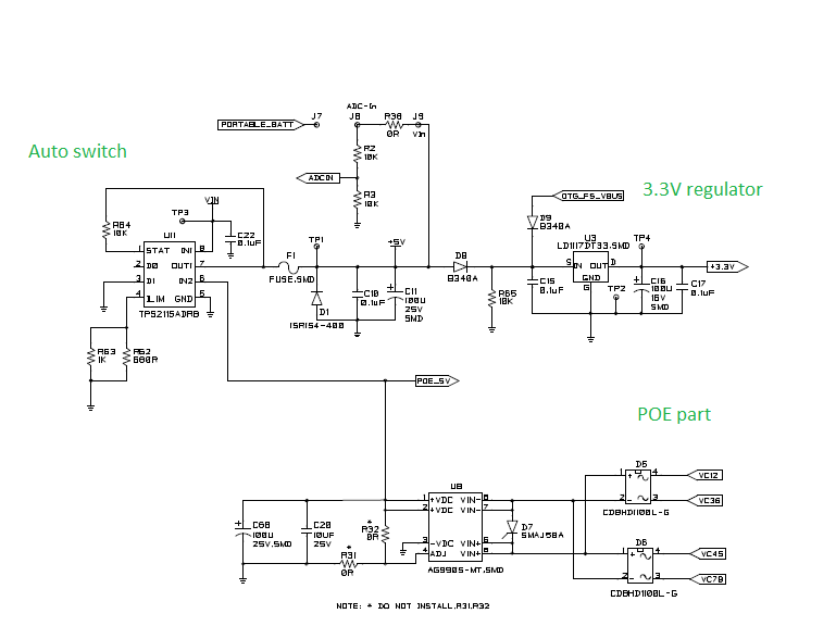 We have used IC TSP2115ADRB, for power switching between main power supply and POE at +5V. The load current is 300mA only.