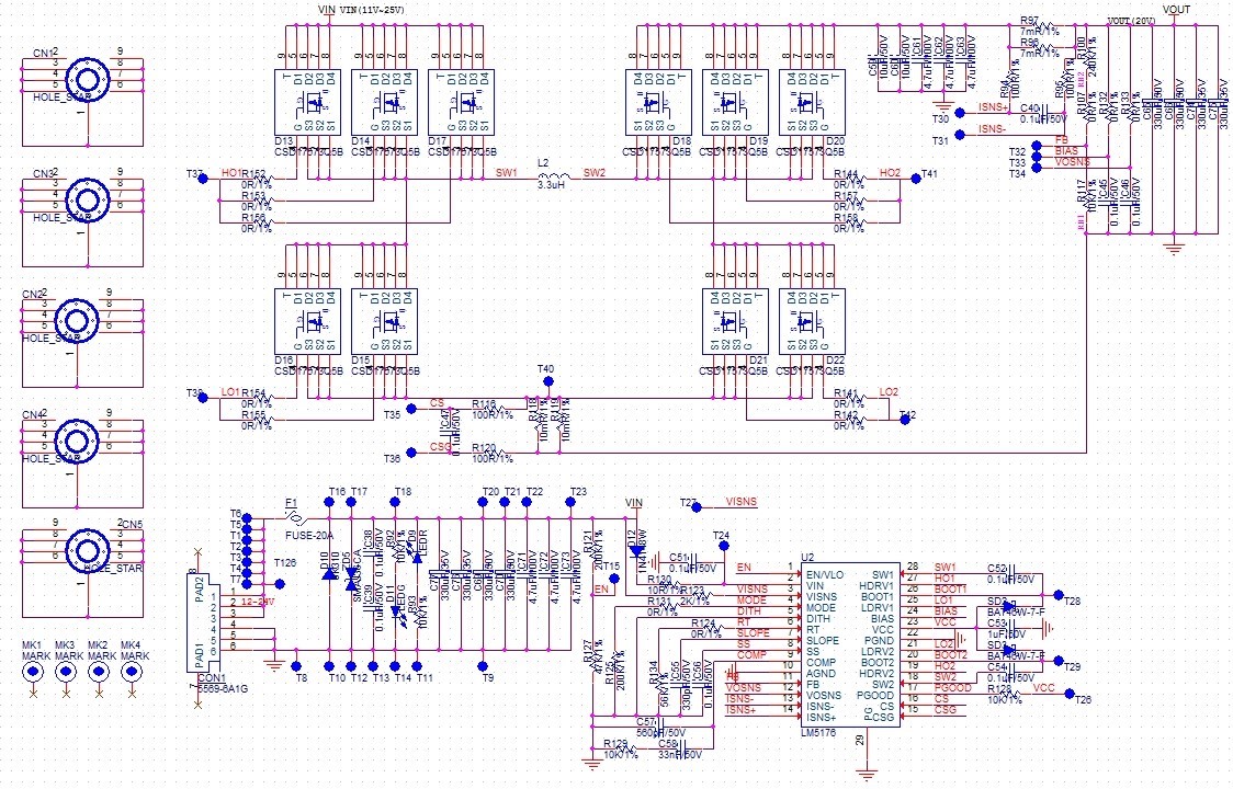 My customer is debugging LM5176, the input voltage is 12~24V, and output is 20V, below is schematics, they found it worked well when in boost mode, however, it is very easy broken in buck mode, sometimes, the MOSFET would broke in bukc mode also, could you kindly help to review and give some advices? Thanks a lot.