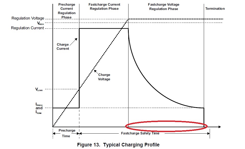 Thank you for your explanation. So, that mean the CV time is depend on the battery/cell itself. Is there any rule or formula to know the charge current declining rate during CV period? How does BQ24610 control the CV time? For example my charge current, Ichg is 2.6A and my termination current, Iterm is set to 200mA, how does BQ24610 control the charge current declining rate during CV time?