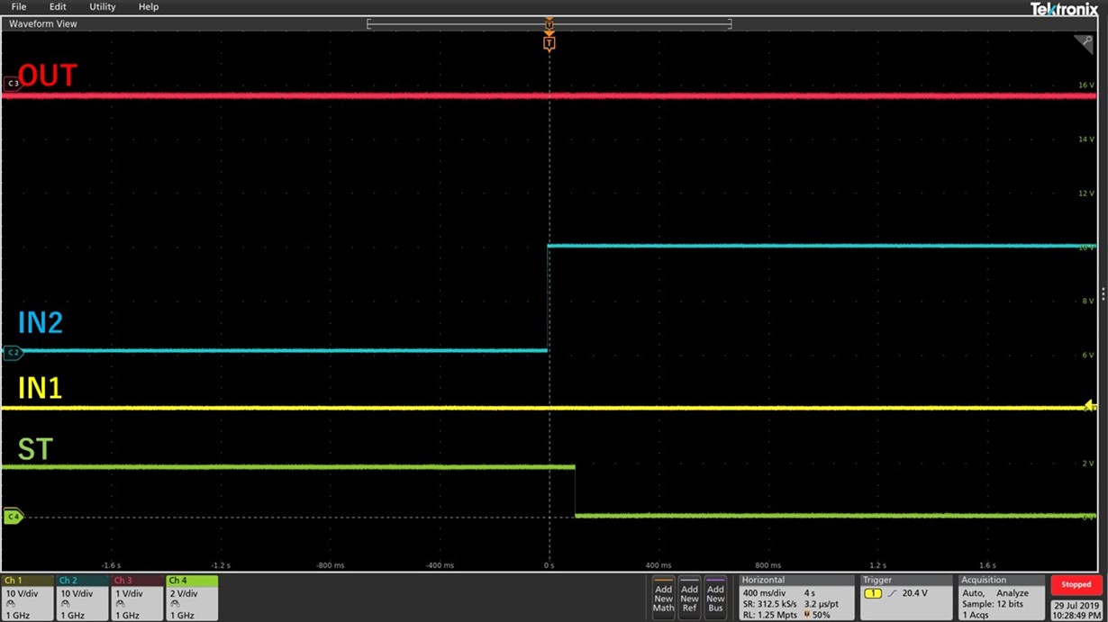 However, according to Fig.3 and Fig.4, IN1 still loaded current (3A) even though ST pin was low.