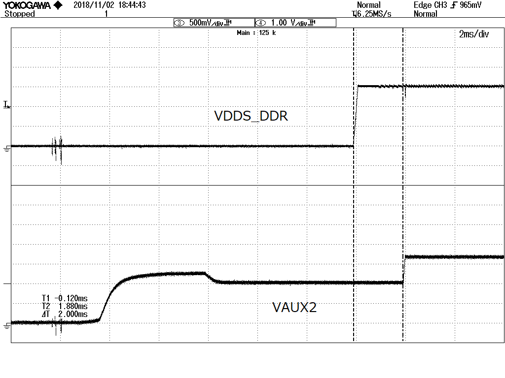 The output of VAUX2 of TPS65910 as shown in the attached figure Output with timing and voltage different from the setting.