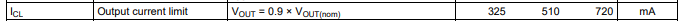 2.) The Output current limit written in datasheet is Min:325mA Typ:510mA Max:720mA