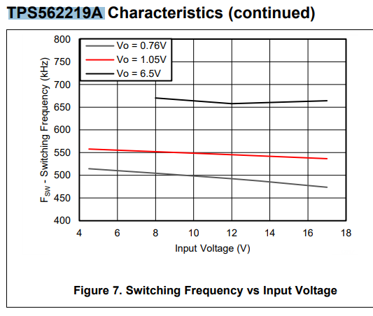 Q2. The Fsw result is 714khz. Why is the frequency higher than 6.5Vout result (from datasheet information)?