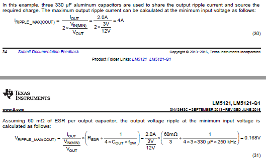 When we make the detailed design procedure of LM5121, we don't understand the equation (30) and (31) in 8.2.2 Detailed Design Procedure.
