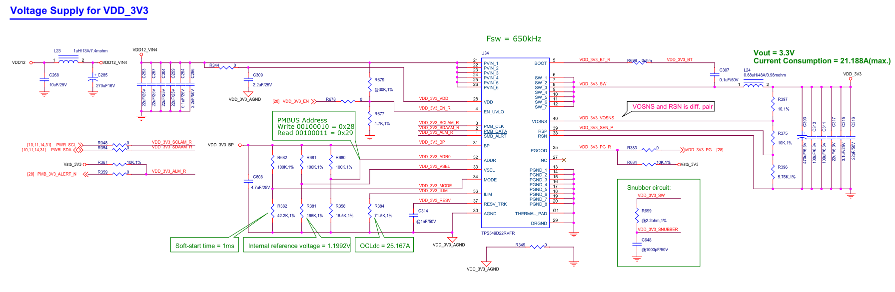Customer is using TPS549D22 to generate 3v3/22A from 12Vin.