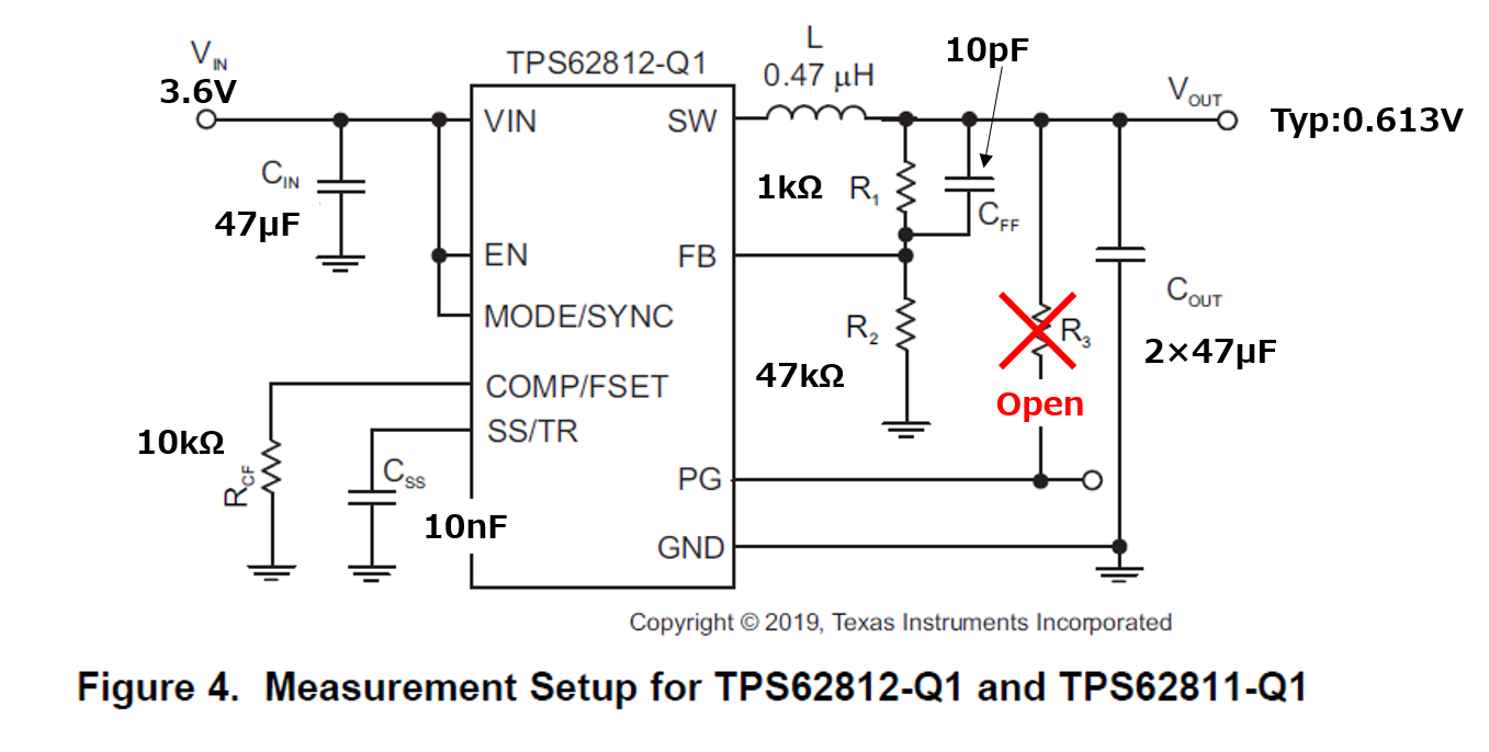 To set Vout = 0.61V, I chose the value of R1&R2 is 1k&47kΩ.