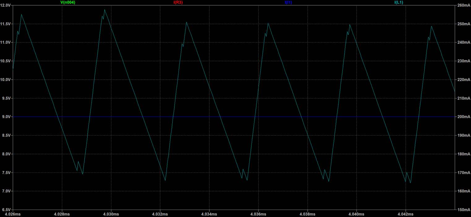 The SPICE one which is available shows strange behavior in simulation (in LTspice). It looks like the device was in BOOST current mode without slope compensation. It's switching in ON TIME – max ON TIME cycles.