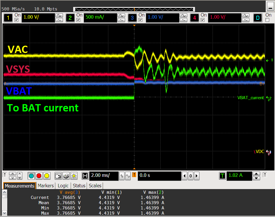 We found the high inrush current when "start charge", higher inrush current with lower Vbat...