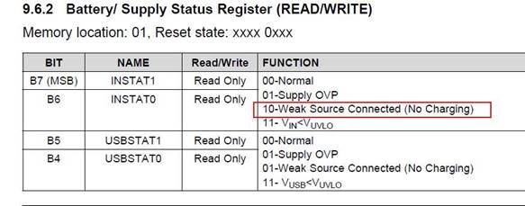 My customer found a power supply have charging issue and charger would show “weak source”, however, no definition for “weak” source in datasheet, could you help clarify this definition? Thank you.