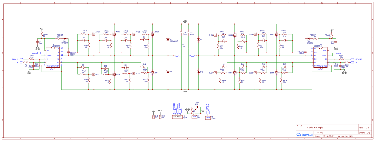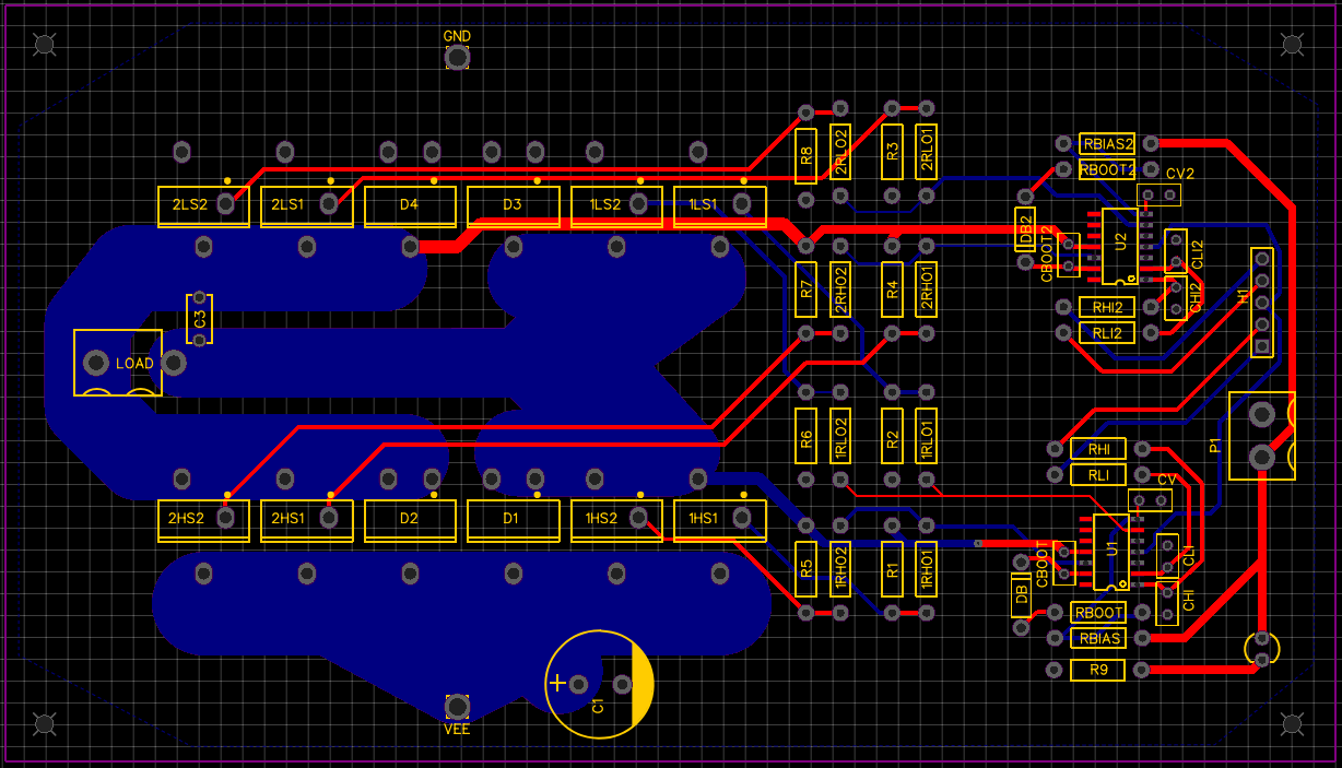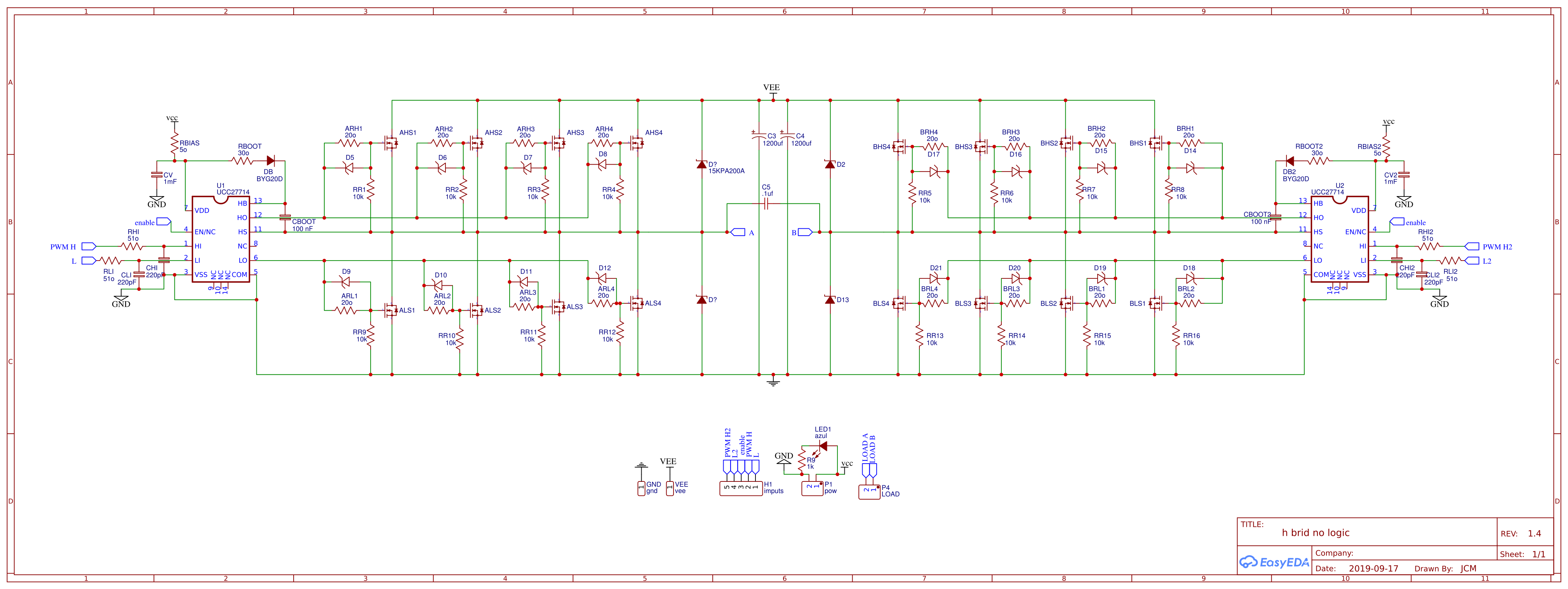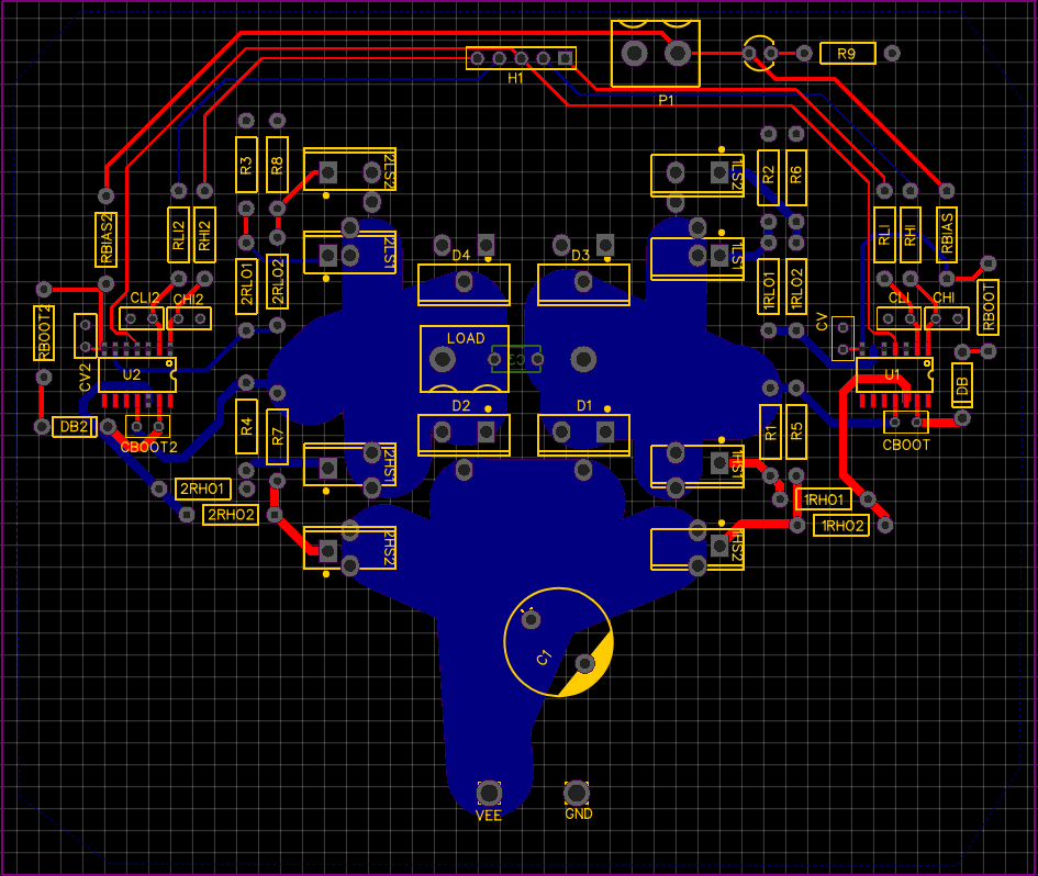 Hello! my name is jesus and recently I have been working on the design of a high current h bridge, I have to say that I am a little novice and would greatly appreciate any help. Make a pcb with the design that I show you here (200v h bridge) with an arduino doing the logic, to generate the pwm and the dir. I don't know what could have happened, since once I connected the bridge and turned on enable the bridge h burned. I also attached the design of the pcb (5x10 cm) and a photo of how the bridge h.