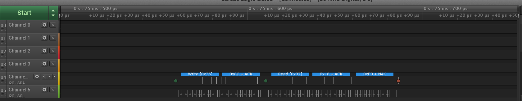 With no load connected I always read 0xE018. The MSB of 0xE0 makes sense but I do not understand why do I read the LSB as 0x18 as you can see from the snapshot below ?