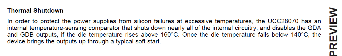 1. so customer want to know the 160C accuracy, they want to know if UCC28070 will shut down when Tj is in the range of 125C and 160C?