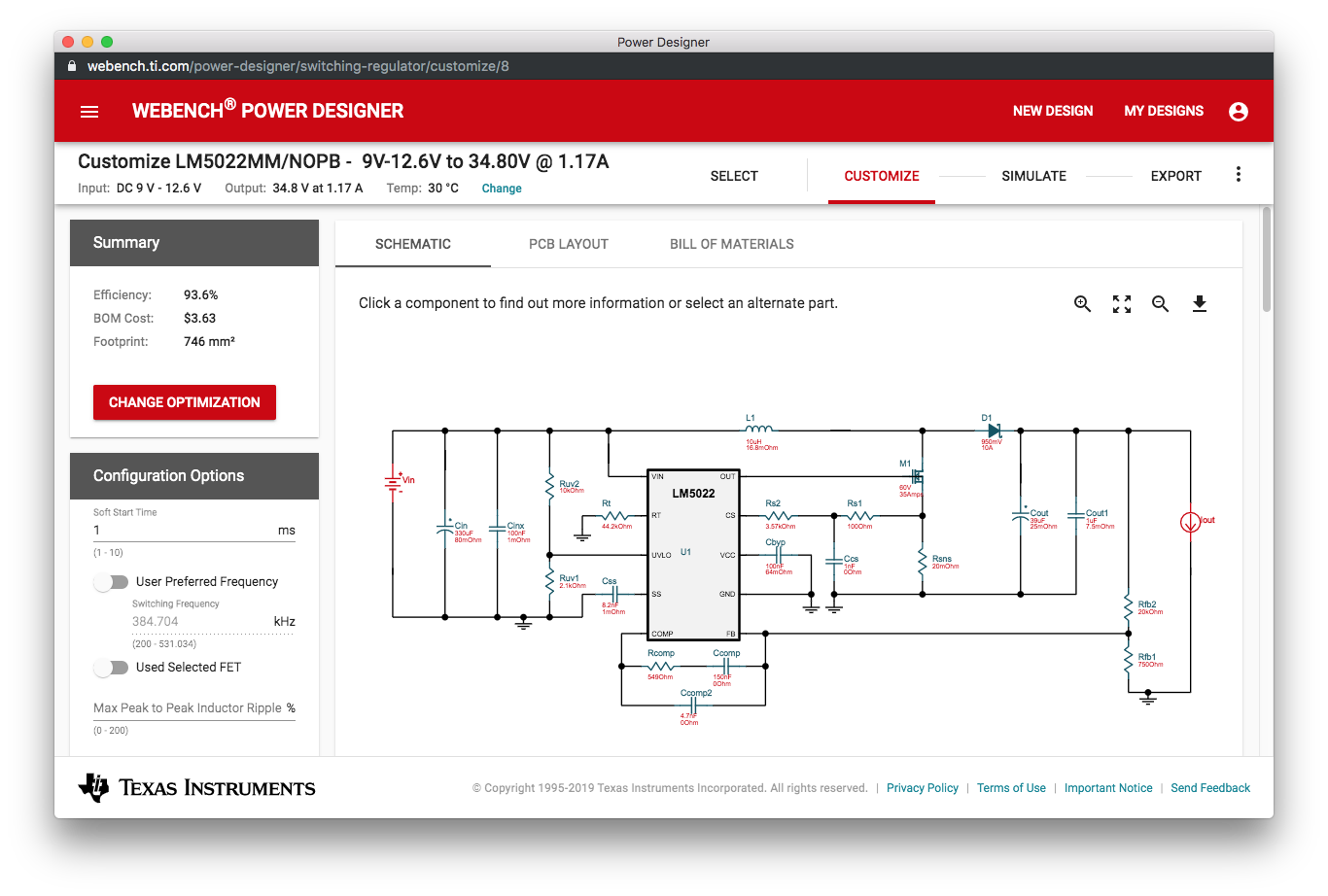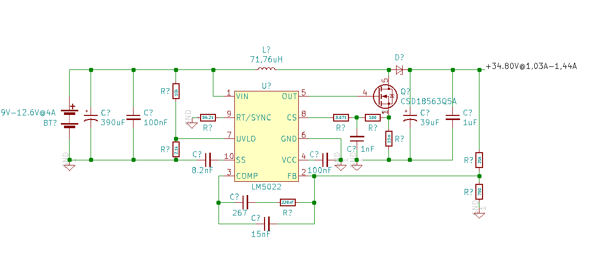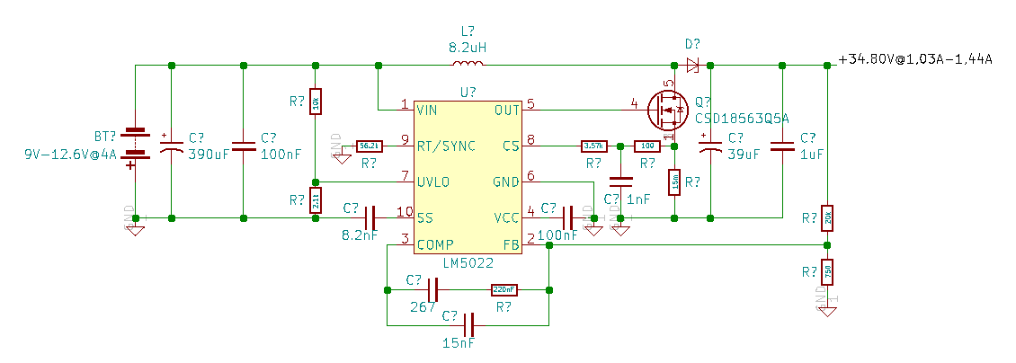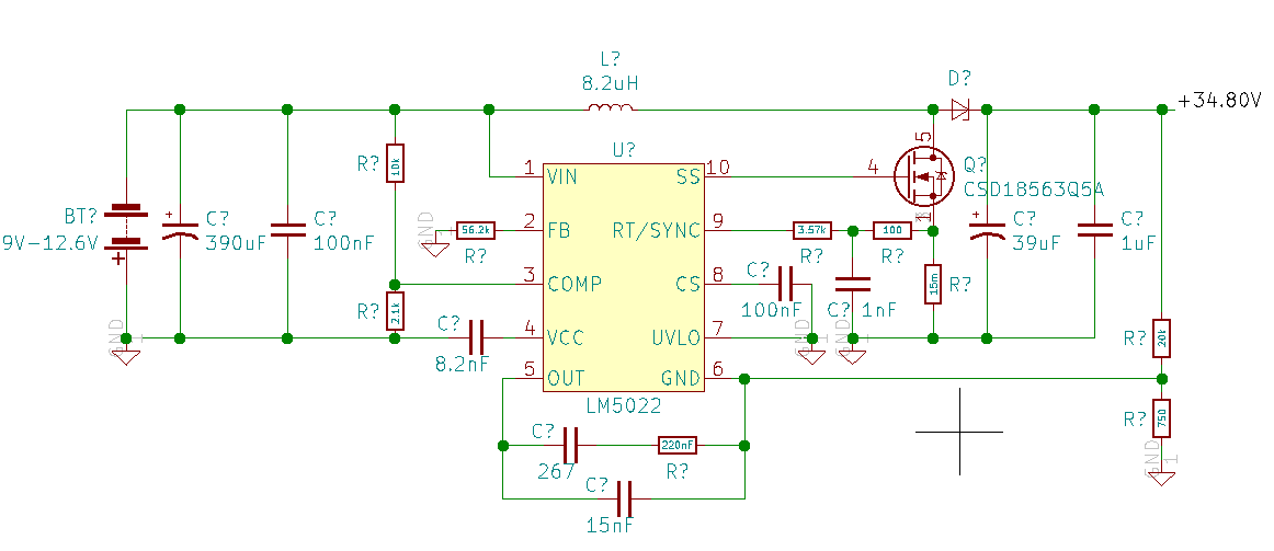 I need to use the LM5022 as a step-up to convert 9..16.6V to 34.8V@1.17A or to 34.8V@0.5A.