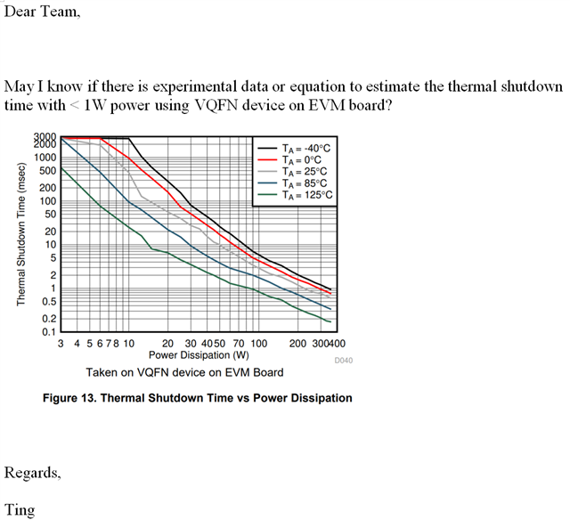 The data used for Fig13 was captured on EVM board with VQFN package. This data is available in Thermal Shutdown Limit plot in TPS2663 Design Calculator (Rev. B). But the data is only available for power dissipation > 3W