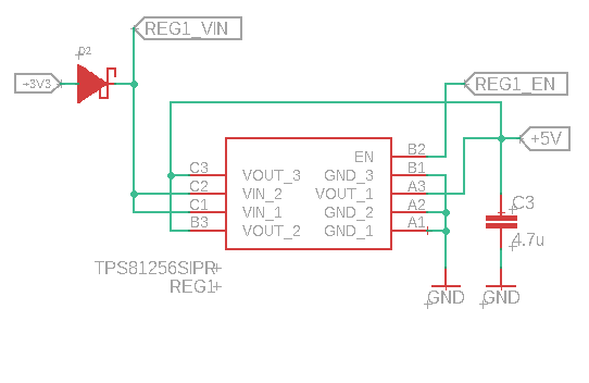 I have the tps81256SIPR providing 5V from a 3.3V input.