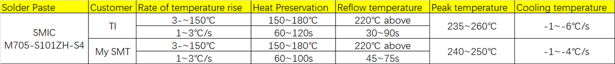 Below is the comparison my SMT temperature curve with TI, please help me check my SMT temperature curve is OK ?