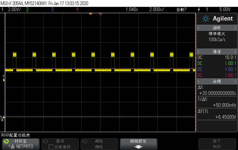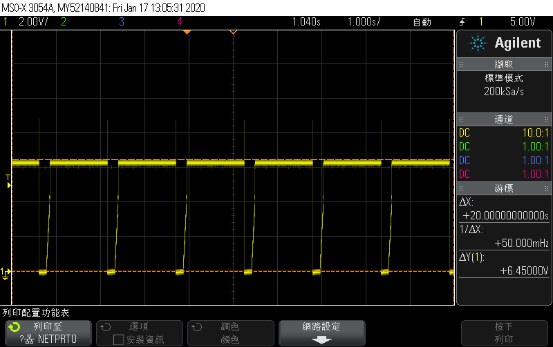 2. Adding > 56mA load see the voltage drop waveform as below.