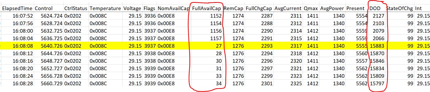 In the image, in the row marked yellow, the two columns in the red circle changed rapidly, but other specs didn't have any abnormal change.
