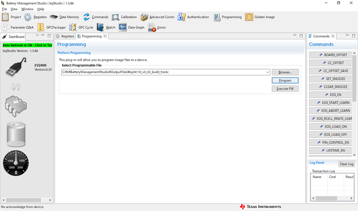 A communication error occured when my customer try to write firmware on bq34110 from bqStudio.