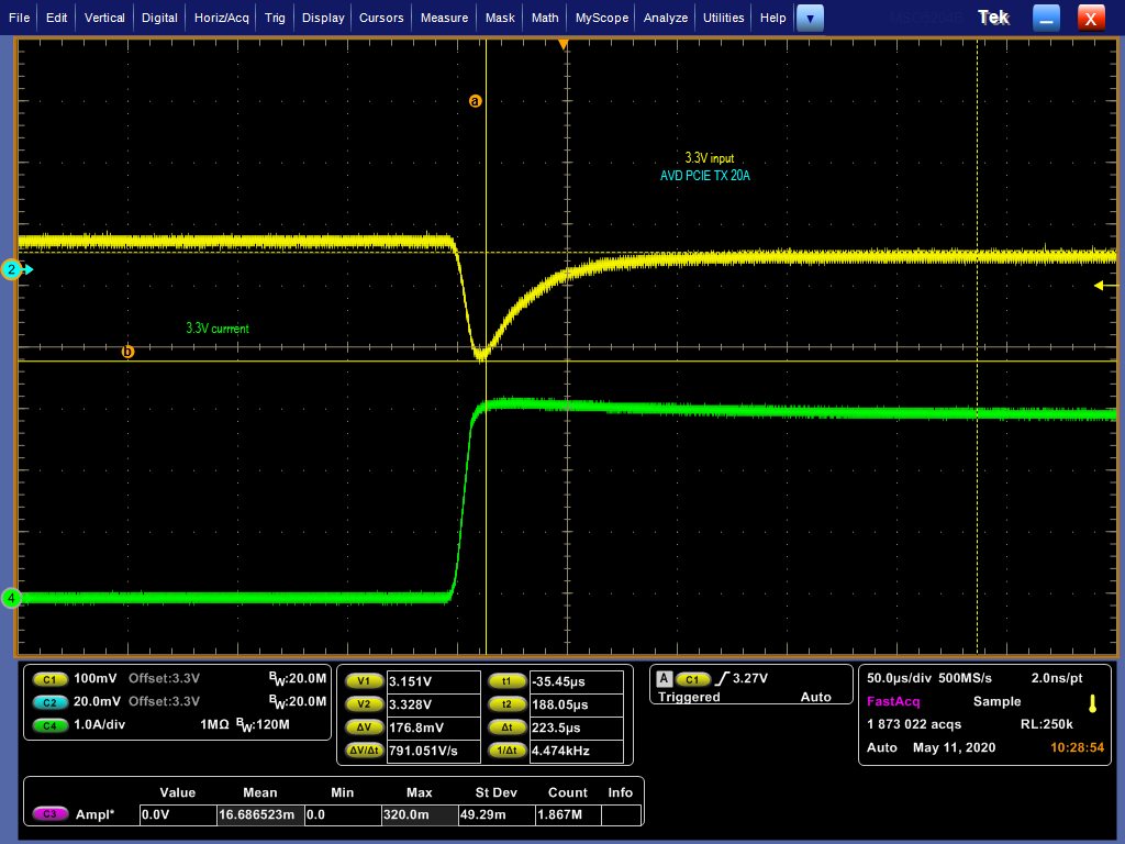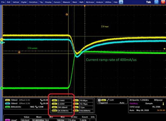 - When the load higher than 250mA/s is applied, then output 3.3V is found to drop by ~200mV (See the snapshot). How can the drop be reduced.