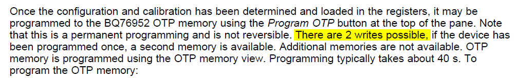 In the sluuc33 document I have read, that I am able to programm the OTP memory for two times: