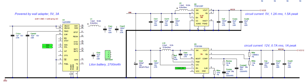- when the unit is powered by the wall adapter, circuit have to be powered AND the battery must recharge (with usual IC's powerpath limits)