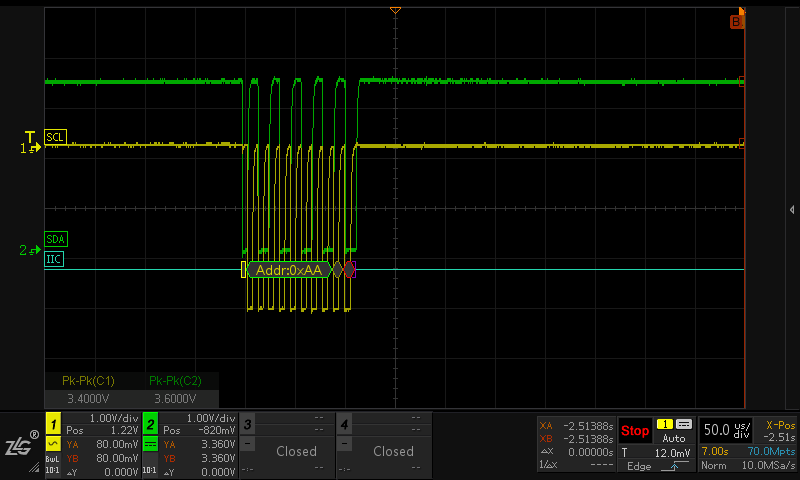 Tested the EVM and attached the oscilloscope, what is the mean of x16 and 0xAA?