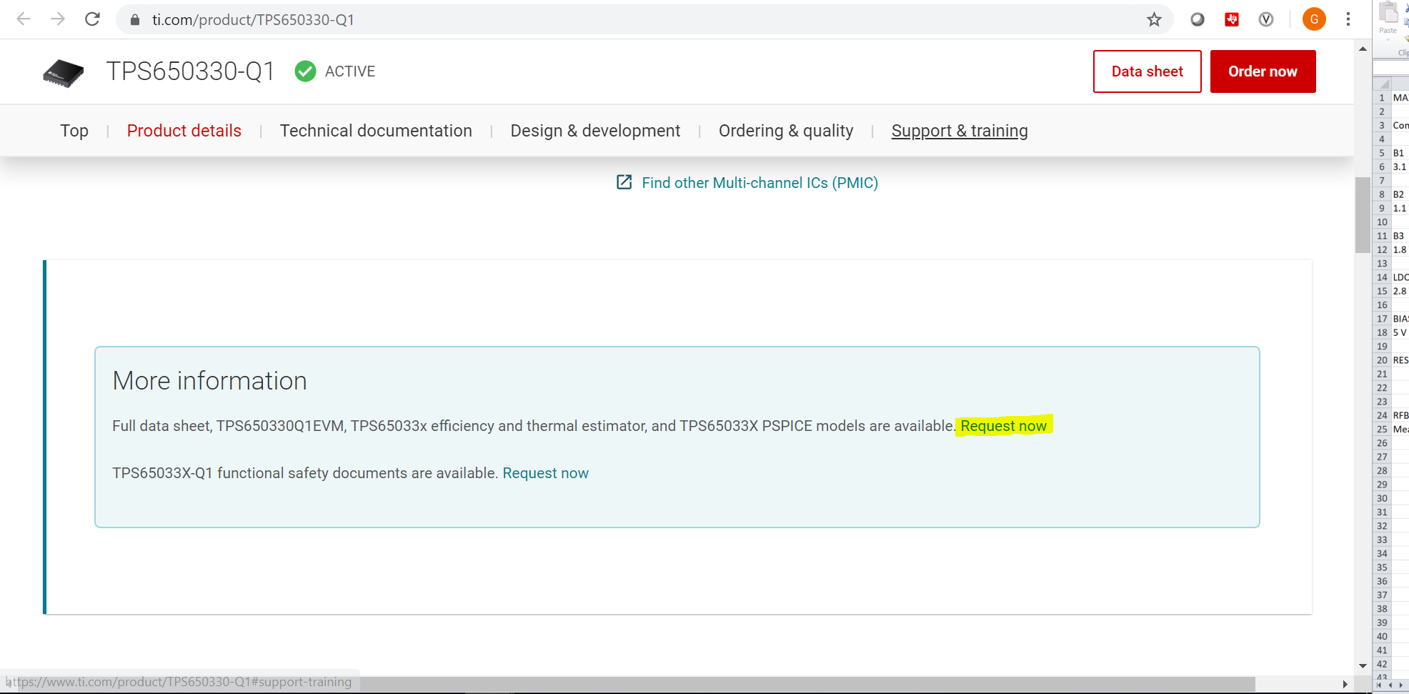 Thank you for this information. I have asked the customer to request the datasheet from the product page of TPS650330-Q1.