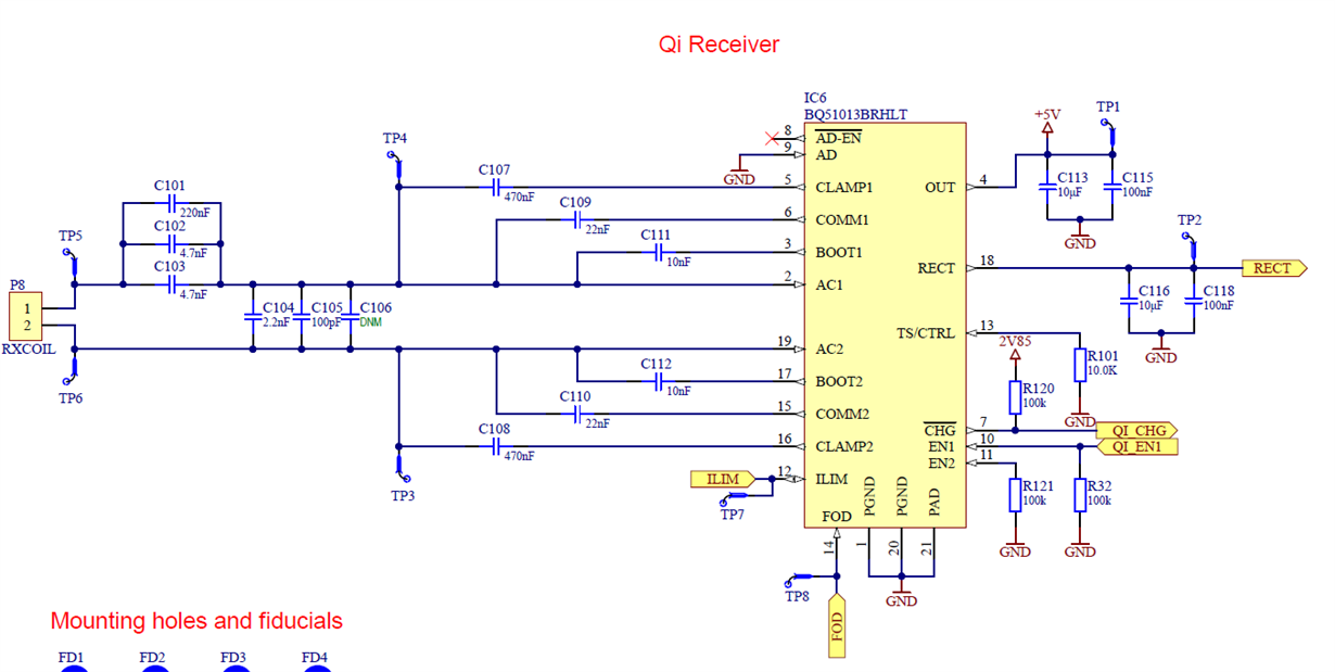 I'm doing maintenance on a 'older' project. The Rx coil has delivery difficulties. Therefor we are looking for an alternative. Base on physical limitations we have I selected a new one and calculated the capacities that should accompany it. However, once stuffed to the board the Qi received it no longer receiving power while it was with the previous coil and capacitors.