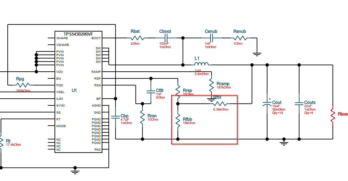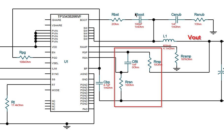 I'm using TPS543B20. In the section "8.4.16 RSP/RSN Remote Sense Function", I have two questions.