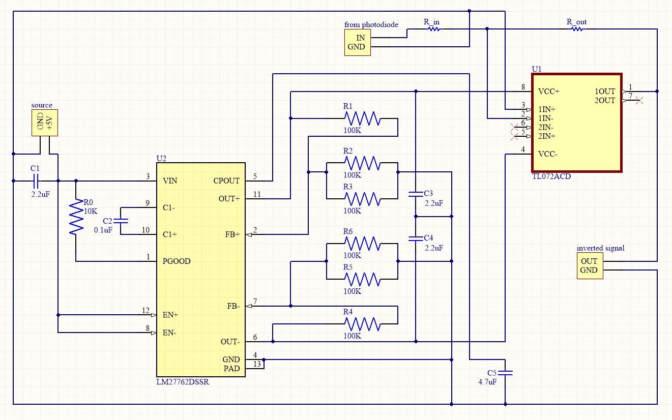 Hi, I need to use TL072 IC as an inverting amplifier, for that, I need to use LM27762 to provide +5V and -5V.