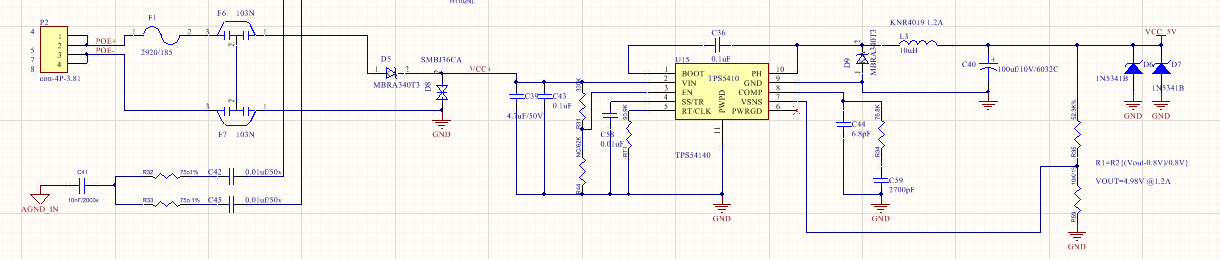 TPS54140 has startup issue. We are not sure if it was caused by the input port. The 12V input is connected in series with 6 Ohm resistor with 100m network cable. 2 wires as VIN+, 2 wires as VIN-, 2 wires as VIN+.