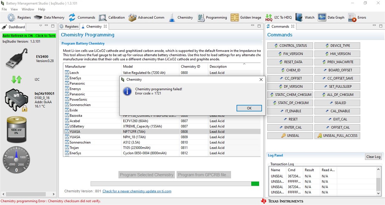 Other Parts Discussed in Thread: BQ34Z100, EV2400, BQSTUDIO