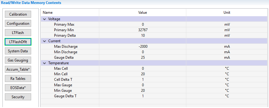 We're using an EV2400 evaluation kit. We use a battery pack of 2 Li-SOCl2 batteries in parallel, 3.6V. Our application normally draws 30μA, up to about 90μA when idle, with higher spikes of up to 10mA during activity.