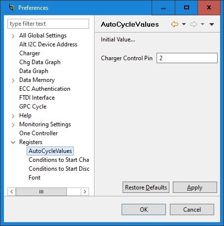 In spite of the non existent TI documentation on using AutoCycle with the BQ40Z50_Rx devices, I have managed to get version 1.3.100 bqStudio's AutoCycle working with the BQ4Z50-R3. There is one thing I haven't been able to work out what it does and that is the AutoCycle Values option, see picture. Can anybody enlighten me as to what this option does? What pin does it refer to and what are the options?