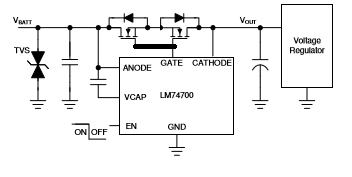 Our customer is considering the following circuit using the LM74700-Q1 and two NFETs