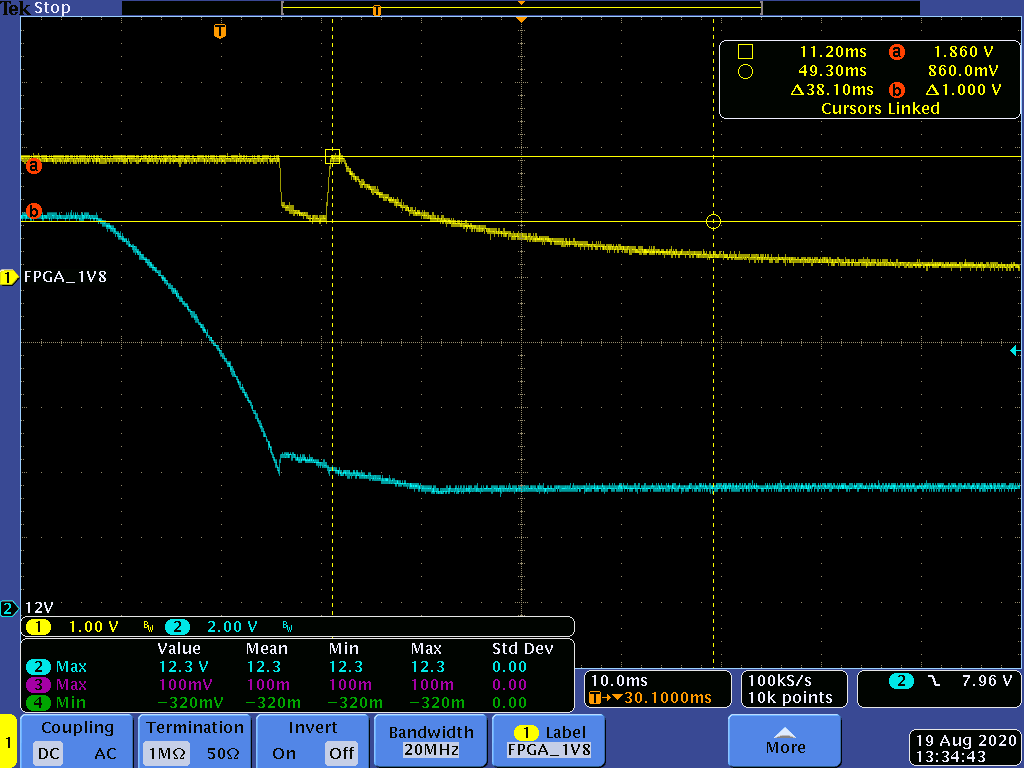 It has down to 0.86V when we turn off 12V Adapter. They would like to know any reason to induce this drop and will be back to 1.8 suddenly.